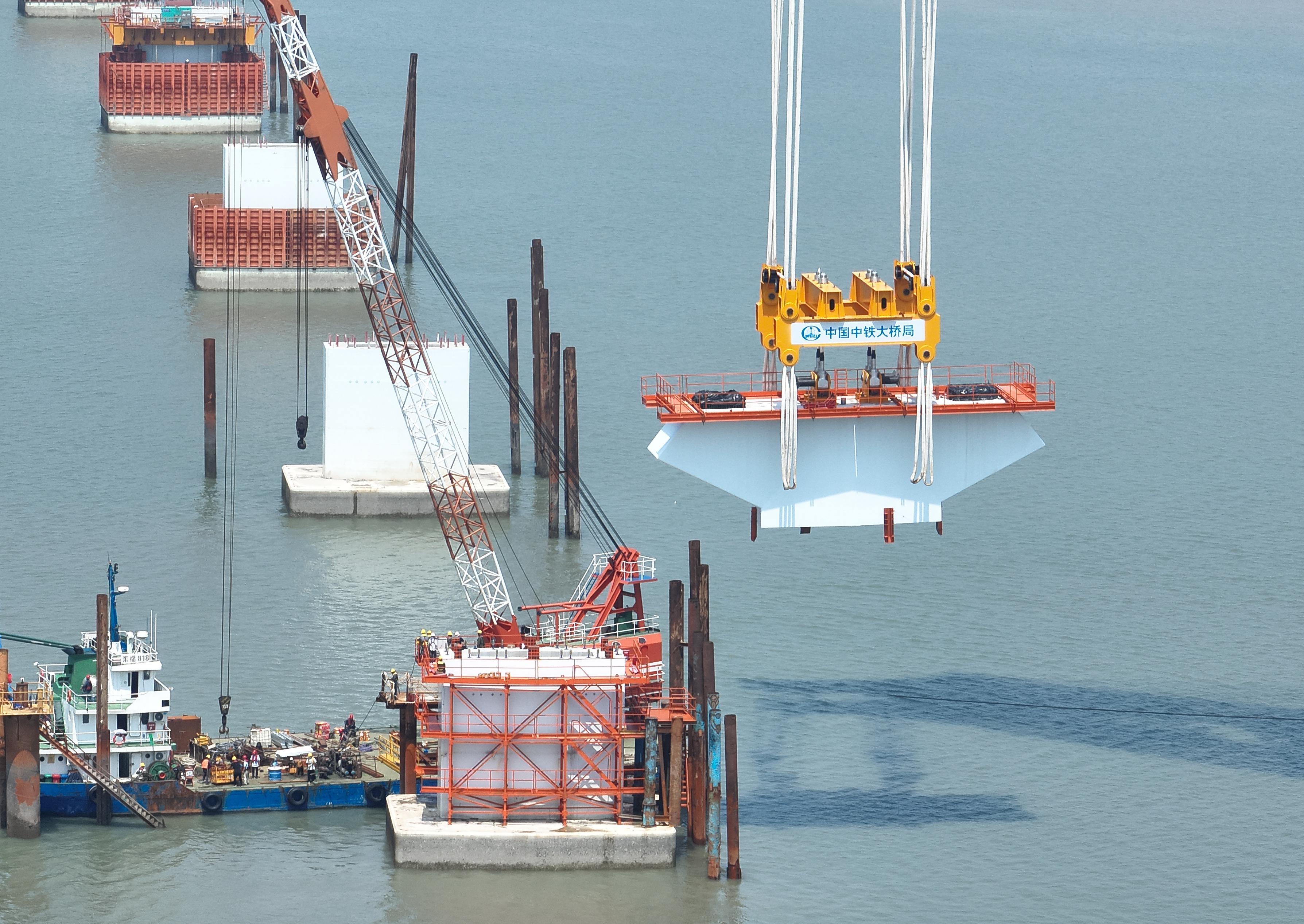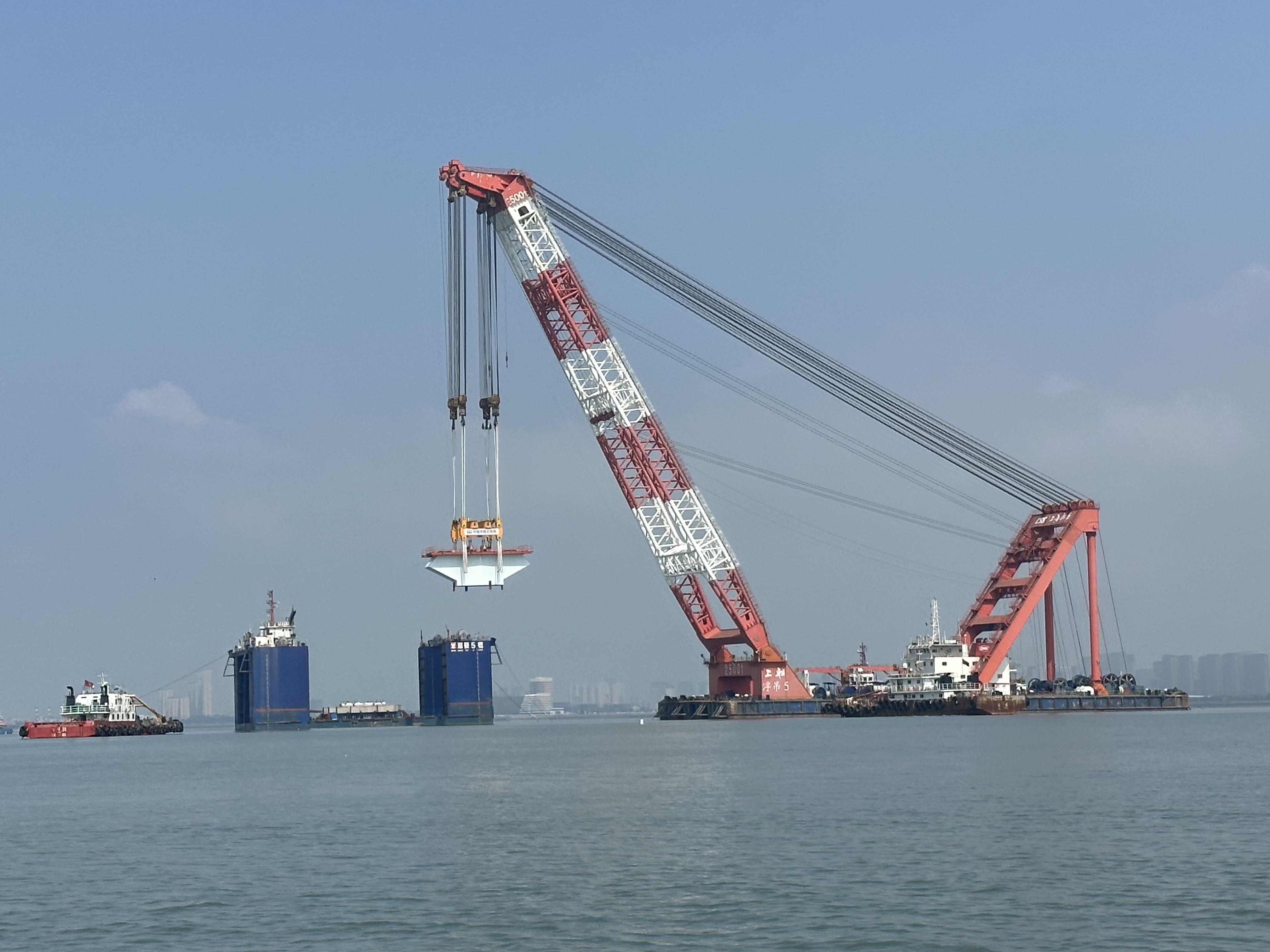 8月2日,于厦金年夜桥(厦门段)A3标段施工海疆,跟着2500吨浮吊主钩精准下放,首个预制墩盖梁完成精准对于位安装,顺遂实现“戴帽”拼装,标记项目设置装备摆设取患上冲破性进展。